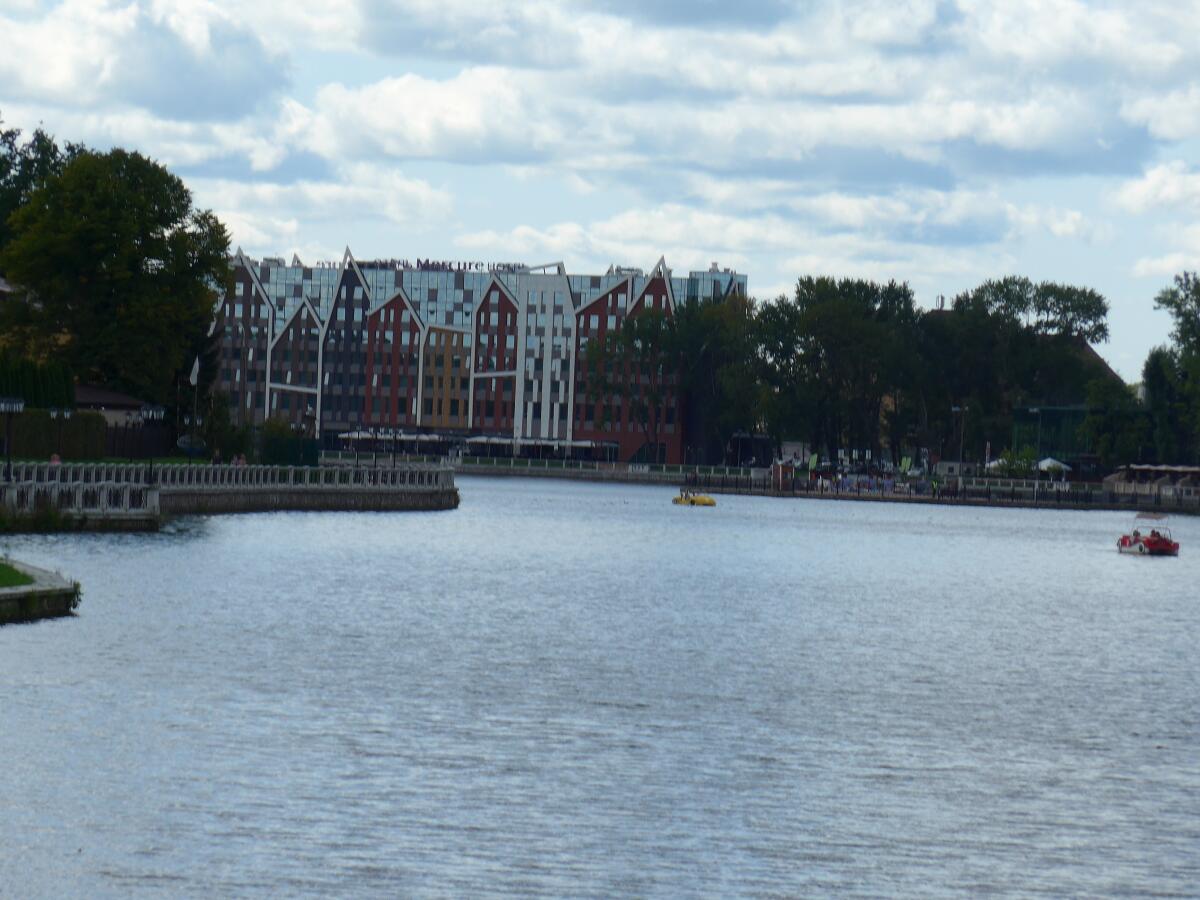 Устроившись в номере и поговорив с регистраторшей, отправилась на первую прогулку. На маршрутке доехала до знакомых мест — острова Канта и набережной Преголи. Пока ехала, удивлялась, как преобразился Калининград, как много красивых зданий, везде многолюдно. Остров Канта очень ухожен, чисто, красиво.