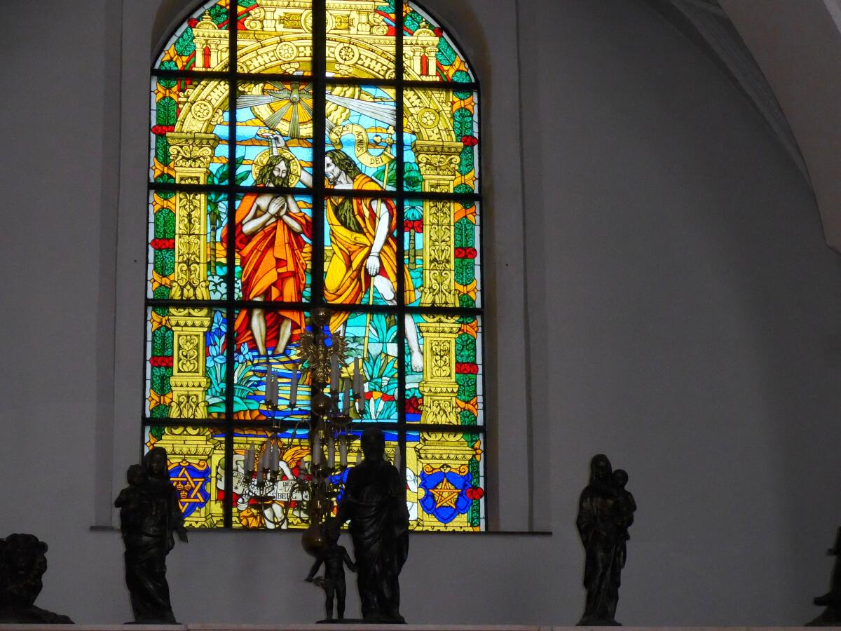 В Кафедральный собор впускать стали минут за 10 до начала концерта, была возможность осмотреть его внутреннее убранство. Зал длинный, большой, ряды темных скамеек, в окнах — витражи, в нишах — старинные фигуры.