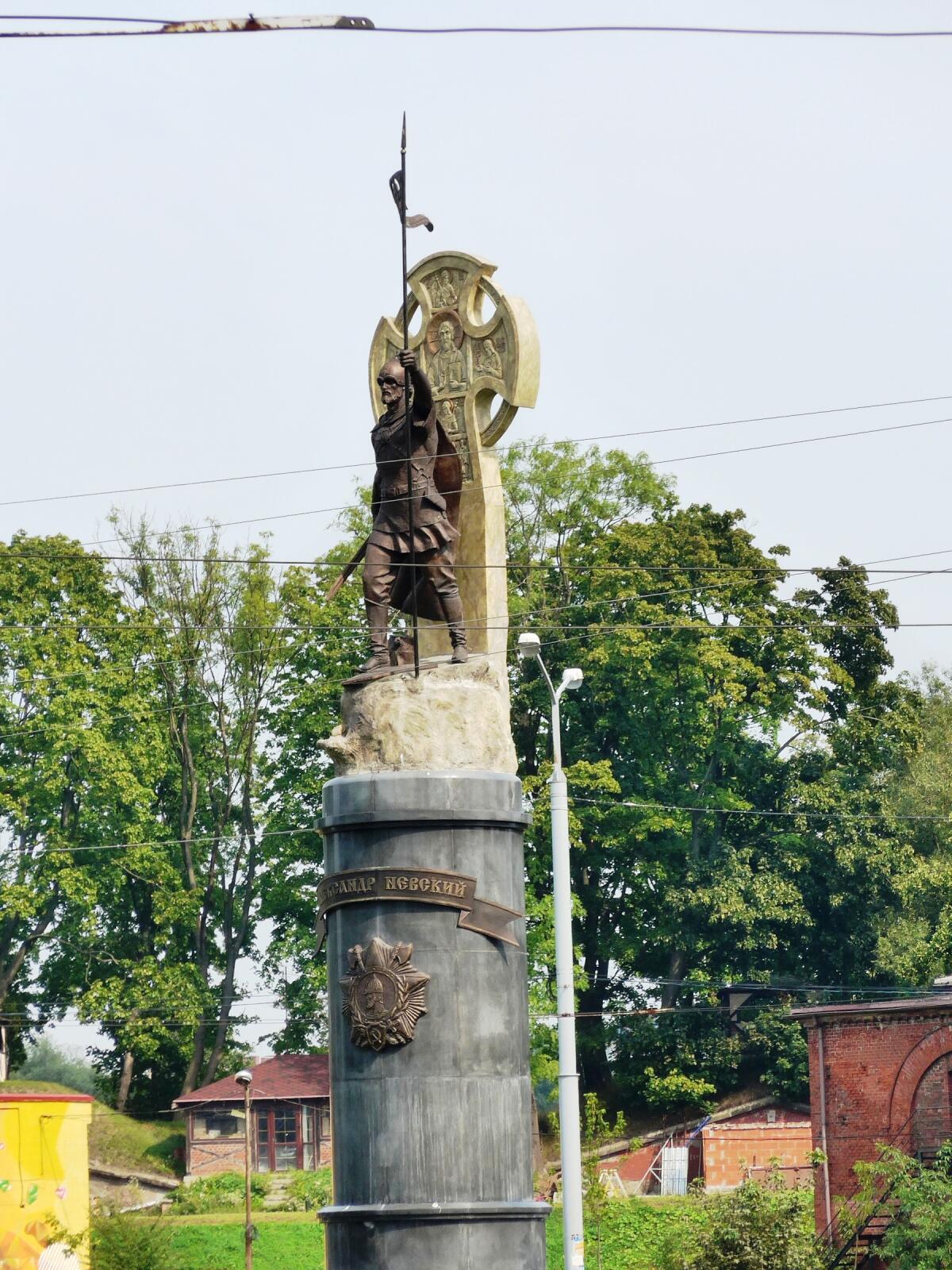 Рядом еще круглая площадь, окруженная транспортной развязкой, в центре её поставлен памятник Благоверному князю Александру Невскому, открытый 18 апреля 2018 года. От нее отходит улица, тоже носящая имя А. Невского.