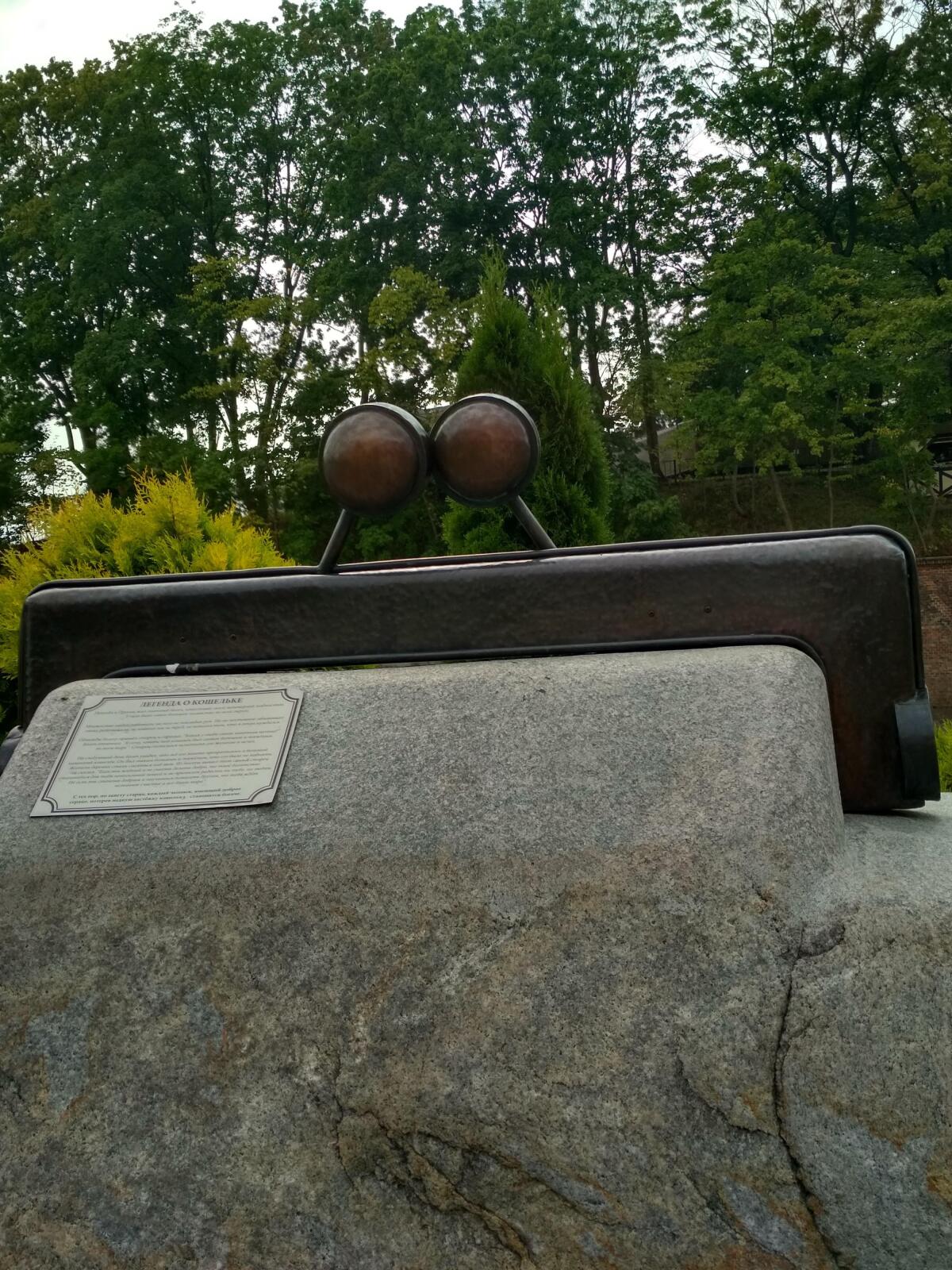 На территории есть несколько разных скульптур, мне понравился памятник кошельку — оригинально.