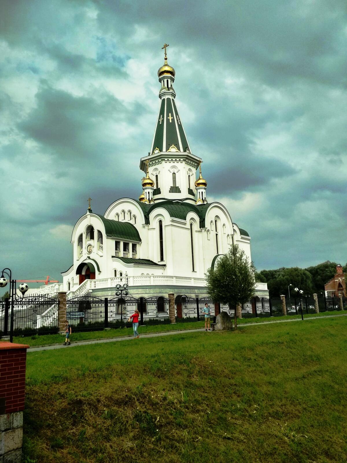 А сразу за «Резиденцией королей» возвышается красивый храм в честь Александра Невского, построен недавно, освящен в декабре 2014 года. Территория у храма облагорожена, ухожена.
