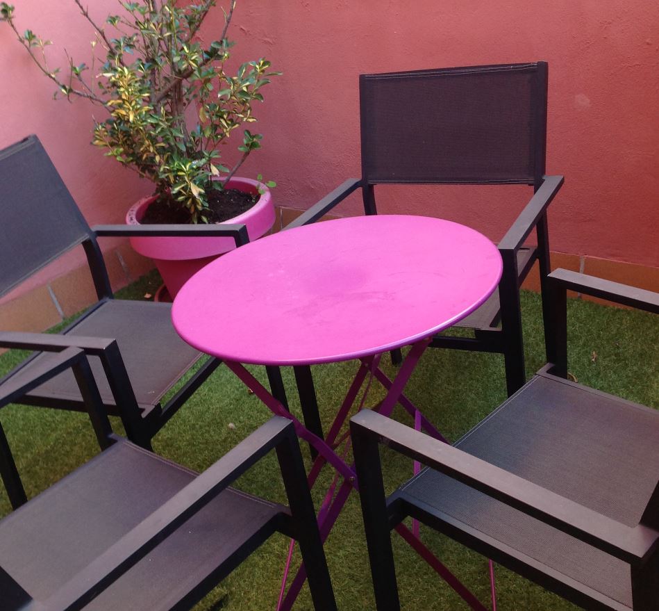 Если вы не очень придирчивы к свежести ремонта, вам бы тоже квартира понравилась. Две комнаты, бОльшая из них — гостиная-кухня, выходит на такую узкую улицу, по которой мы еле прошли пешком с чемоданами. Для меня это был хороший признак — значит, не будет пабов и рева машин. А спальня вообще смотрела окнами в тихий дворик (у меня есть пунктик — тишина), и у нас был даже ключ от личного патио, со столиком и креслами на зеленом газончике. Как жаль, что это было зимой, и мы только смотрели на патио голодными глазами — пить там утренний кофе при восьми градусах ночью было бы точно некомфортно.