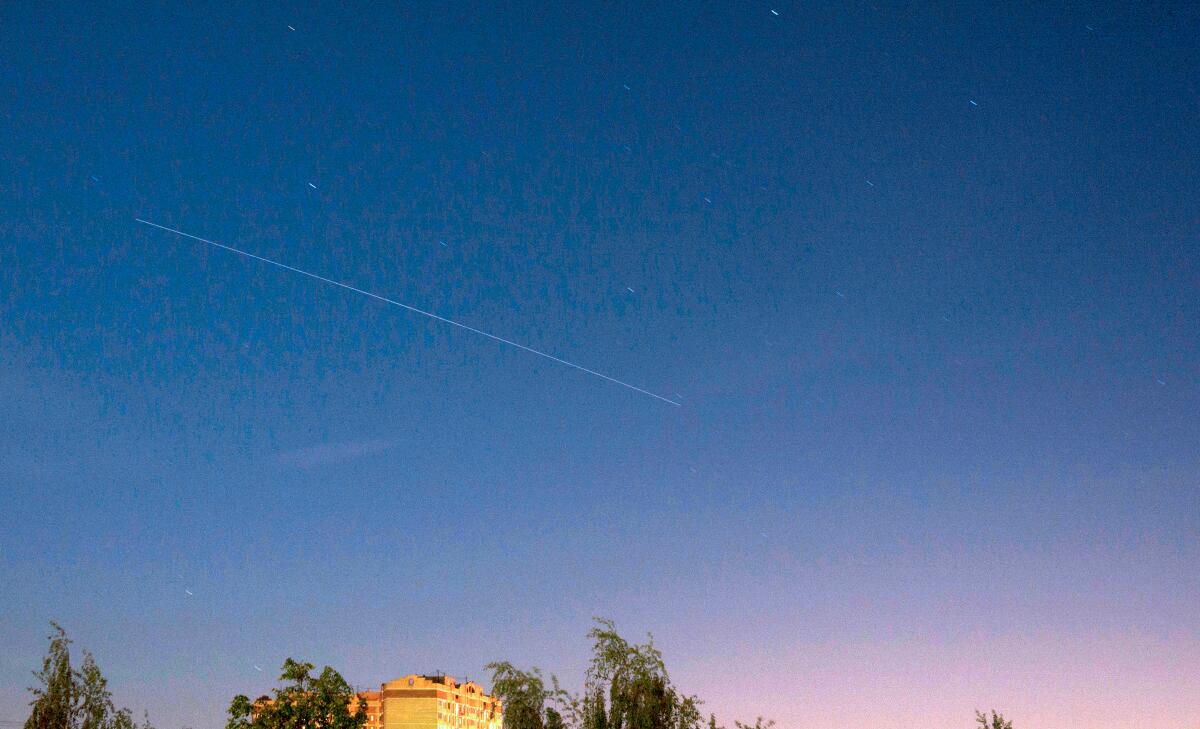 За 60 секунд экспозиции (F10, ISO 100) МКС, двигаясь справа налево относительно фотоаппарата, запечатлела на его матрице часть своего пролета в виде длинной светящейся дуги.