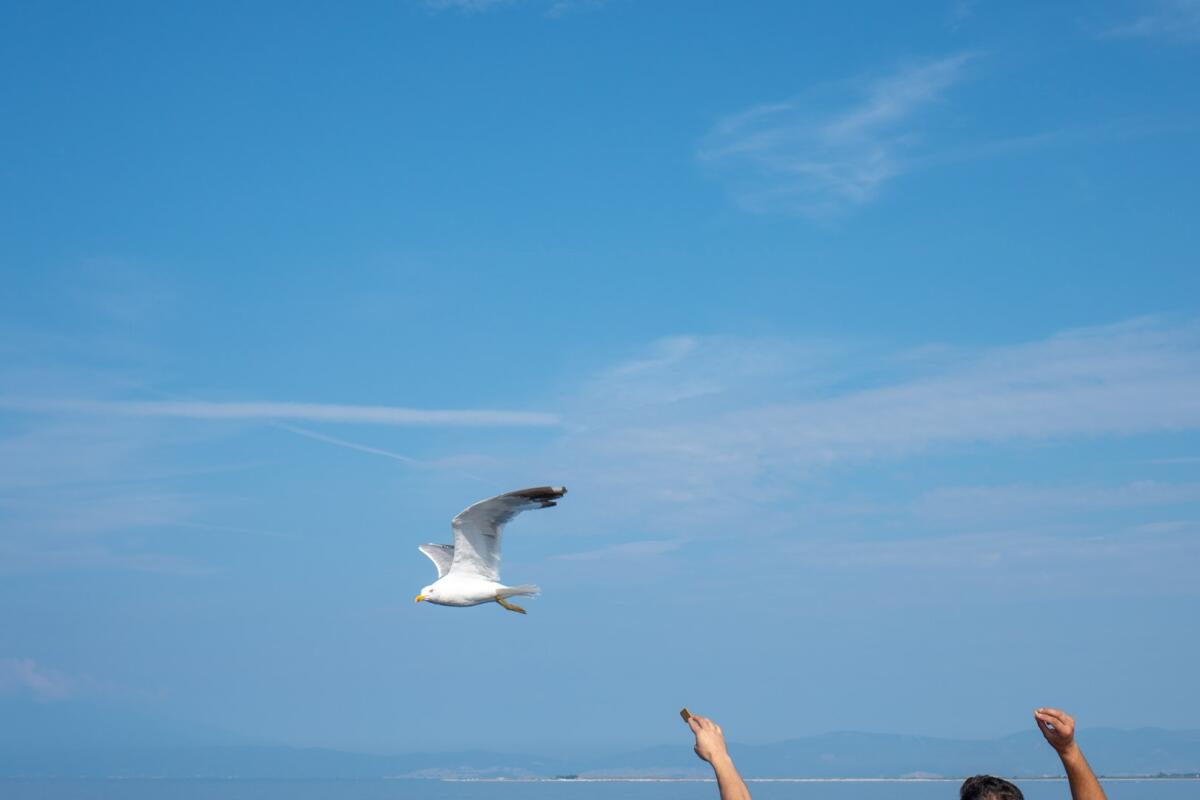 Публикацию я предварил заглавным фото с ритуальным кормлением чаек по пути к острову Тасос. Многочисленные туристы, считающие необходимым покормить птиц с рук, создали естественную для чаек среду обитания: стоит только парому отчалить от берега, как чайки начинают следовать параллельным курсом.