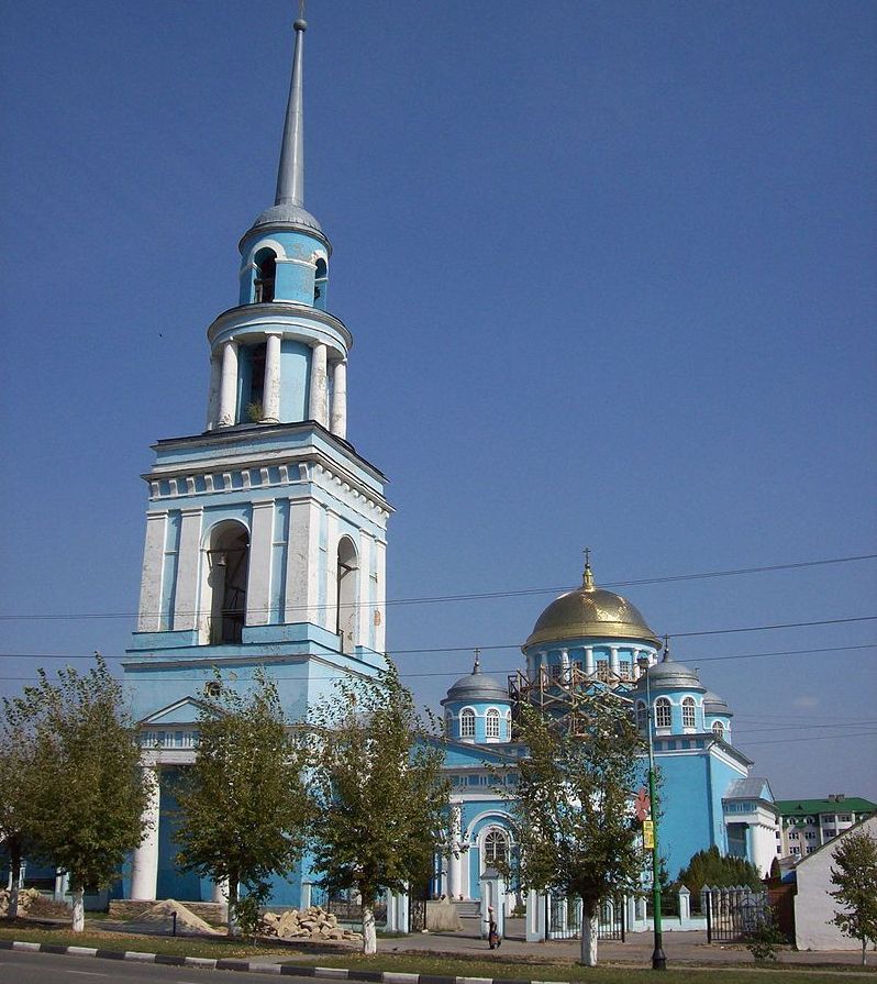 Делаем короткую остановку в городке Данков. Жаль, что не сохранилась здесь пятиярусная колокольня красивейшего местного собора — её кирпичами вымощена одна из районных дорог. А собор выстоял, выжил и горделиво возвышается в центре Данкова, встречая и провожая всех, кто проезжает по городу. Когда смотришь на это великолепие, трудно представить, что не так давно этот храм служил пунктом по приёму стеклотары и складом райпищеторга…