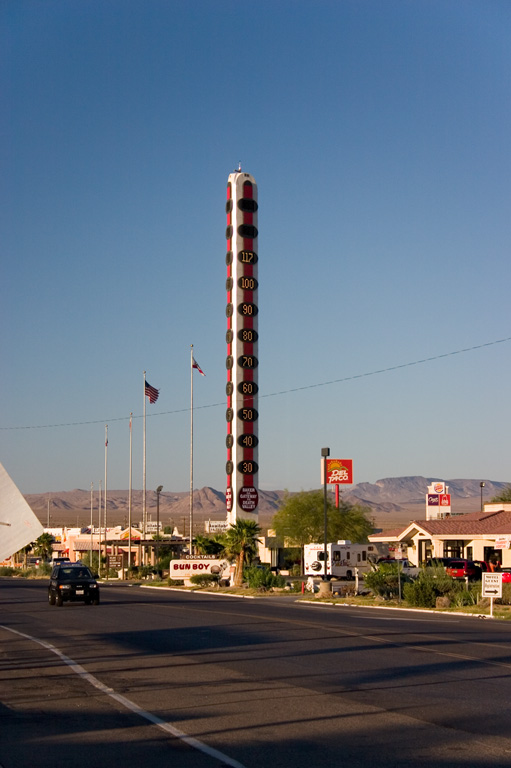 Если же говорить более широко в географическом плане, то большие термометры имеются на улицах крупных городов в Японии, Китае, Дании, США и в некоторых других странах. Конструкции у них различные по схеме действия, но общее назначение — не только измерение температуры воздуха, но и оригинальное дизайнерское украшение. Для путешественников и туристов фото и видео с местным столь большим арт-объектом — прекрасный способ «отметиться» персонально рядом с интересной достопримечательностью.