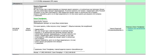 Это было неделю назад. Вам был написан ответ 8 августа. Если точнее - [2019-08-08 09:25:37]. Я еще удивилась, что Вы мне не ответили. Поищите в папке "спам".