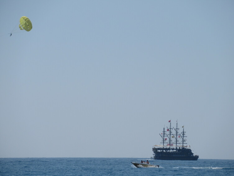 На выходе турки-торгаши попытались нам втюхать втридорога разное барахло якобы в ликийском стиле, обещая и счастье, и рай после смерти — «только купи, брат», но я ограничился только бутылкой минеральной воды и посещением их туалета.
