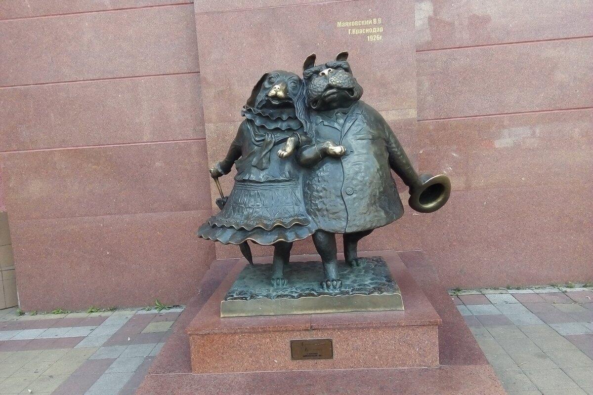 В. Маяковский был в Краснодаре в 1926 году. Напоминает об этом памятник «Собачкина столица», где написаны слова Маяковского о Краснодаре в шутливой форме. Две влюбленные и смешные собачки идут по улицам города, рассматривая городские красоты. Этим памятником скульптор Пчелин решил увековечить слова Маяковского, сказанные в шутку, что Краснодар ;— это собачкина столица.