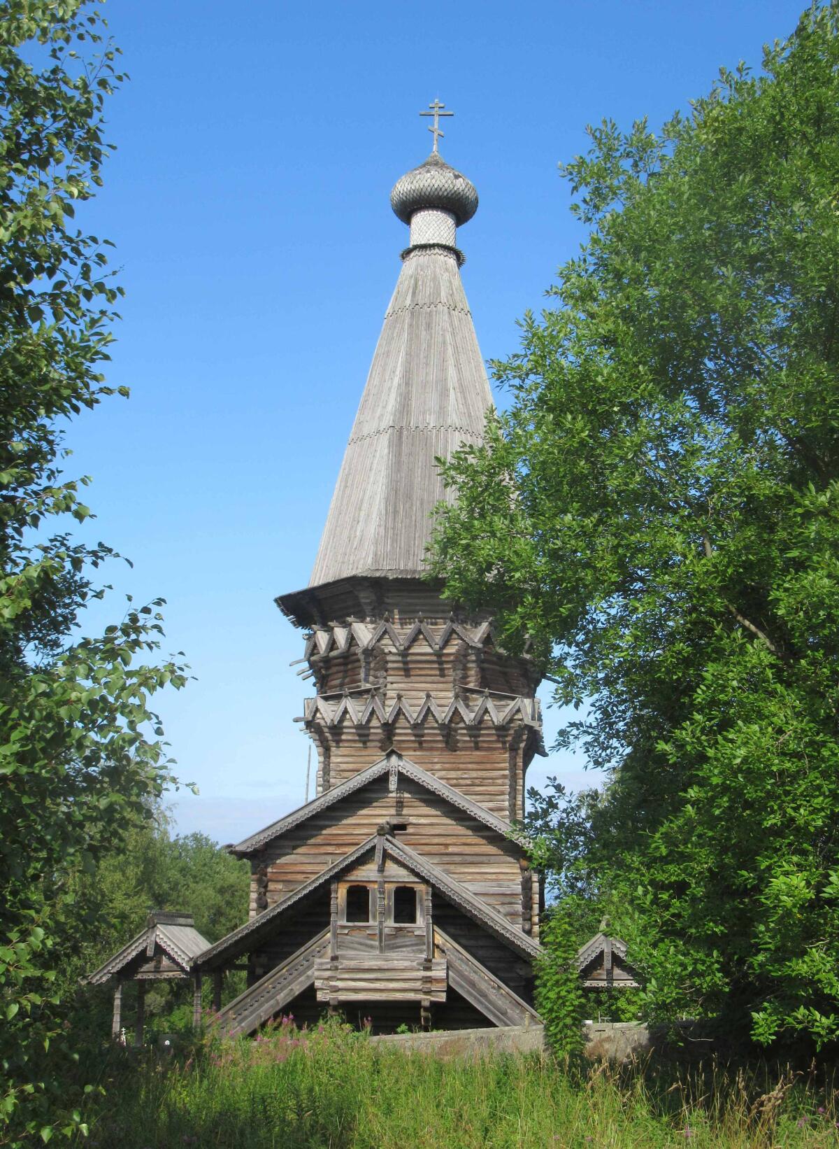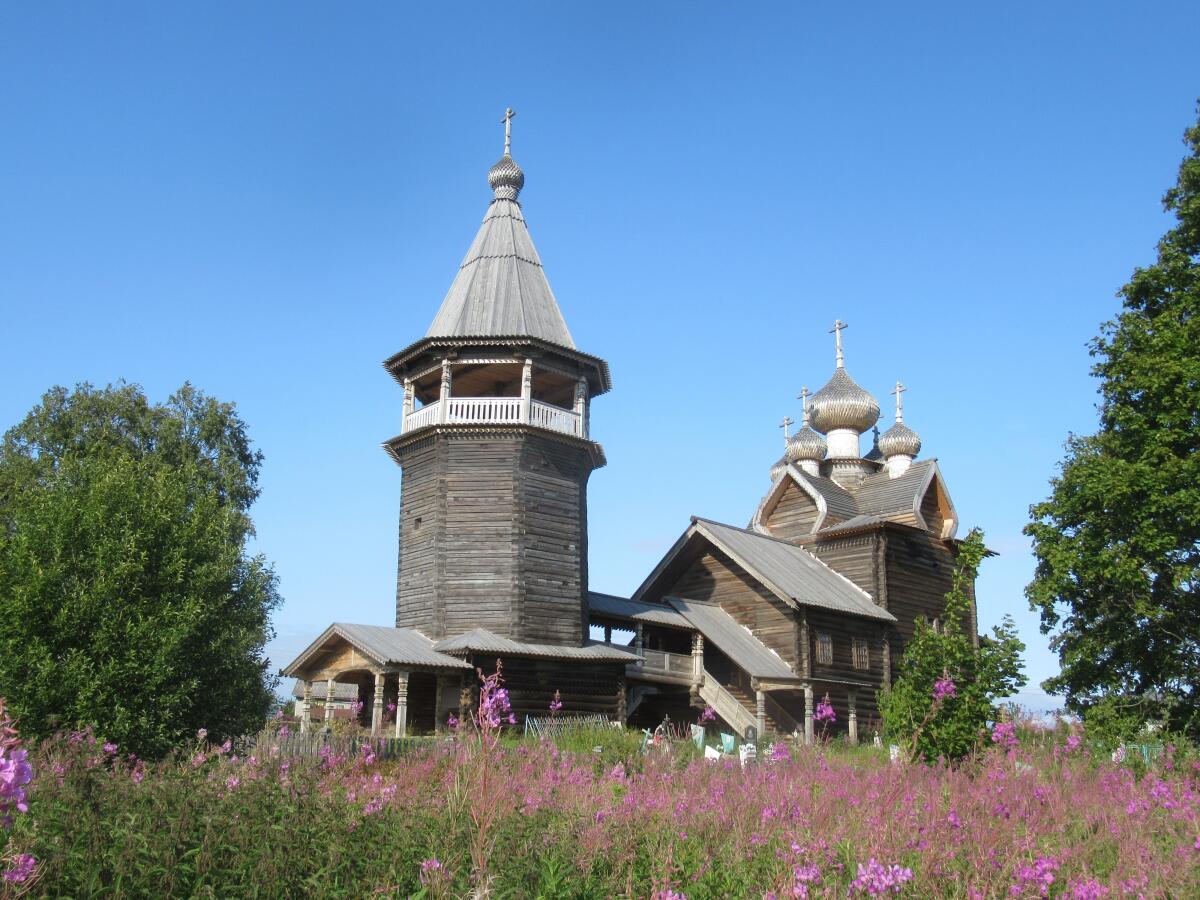 Но если вы добрались до Гимреки… Обязательно надо проехать ещё пяток километров в сторону Вознесенья, чтобы попасть в Щелейки. И увидеть уже многоглавый деревянный храм XVIII века. А поскольку о Доме Мелькина и Гиморецком погосте я уже как-то рассказывал, сегодня — о построенной в 1783 году церкви Дмитрия Солунского.