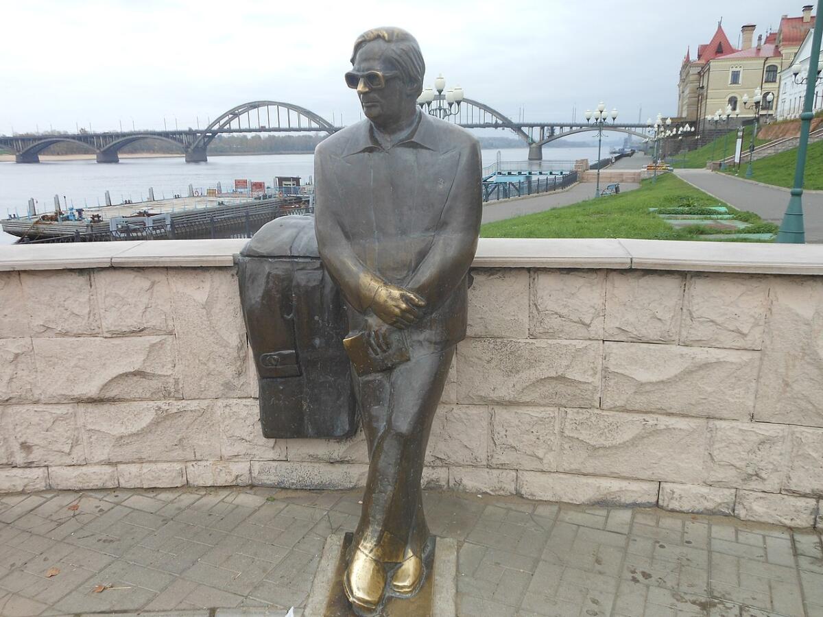 Возвращаемся на улицы Рыбинска. Прекрасная набережная со старыми домами, с памятниками: здесь стоит Лев Ошанин в натёртых до блеска ботинках — «Здесь мой причал и здесь мои друзья…», а недалеко памятник бурлаку — сильный, но очень усталый человек смотрит на свою кормилицу Волгу…